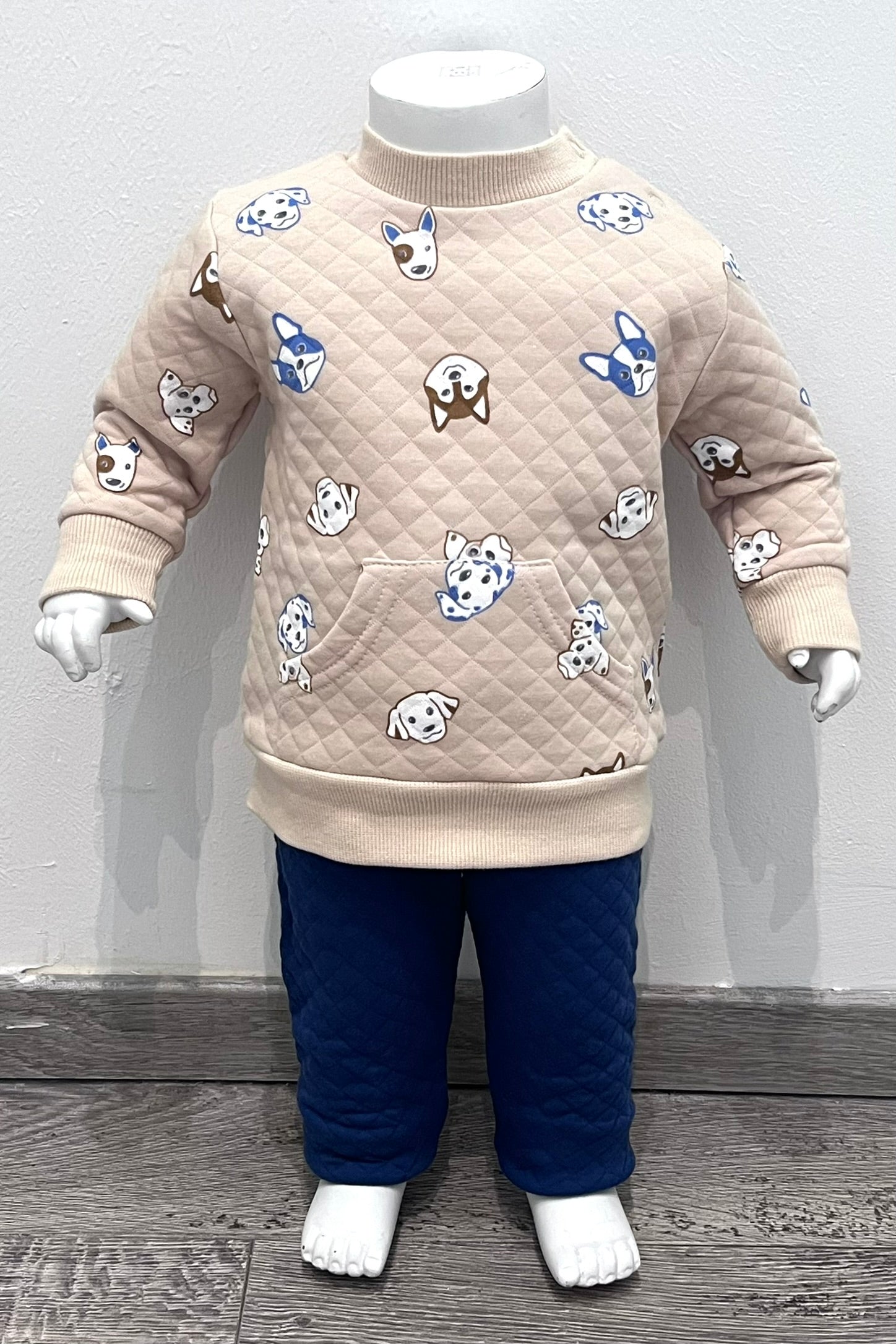Ce duo audacieux en coton matelassé comprend un sweat-shirt et un pantalon assorti, avec des motifs animaliers. Confectionné avec soin au Portugal, il allie confort et style affirmé.