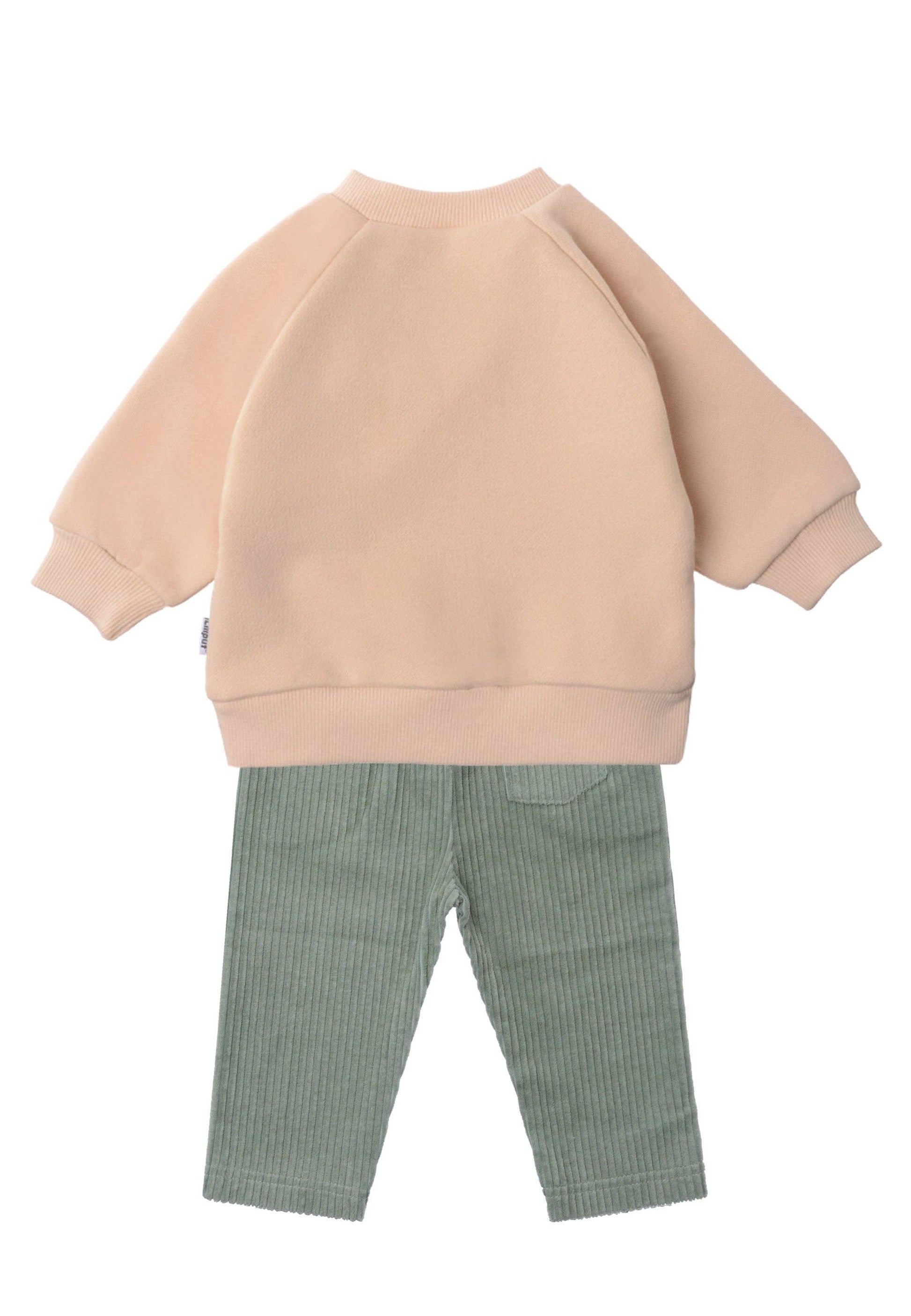 Le pantalon en velours côtelé rose foncé, doux au toucher, est confectionné en coton pur et garantit un ajustement confortable grâce à sa taille élastique et son cordon fixe. Les poches généreuses, à la fois pratiques, confèrent un style décontracté au pantalon. Parfait pour les petits aventuriers, cet ensemble assure des moments de bien-être stylés !