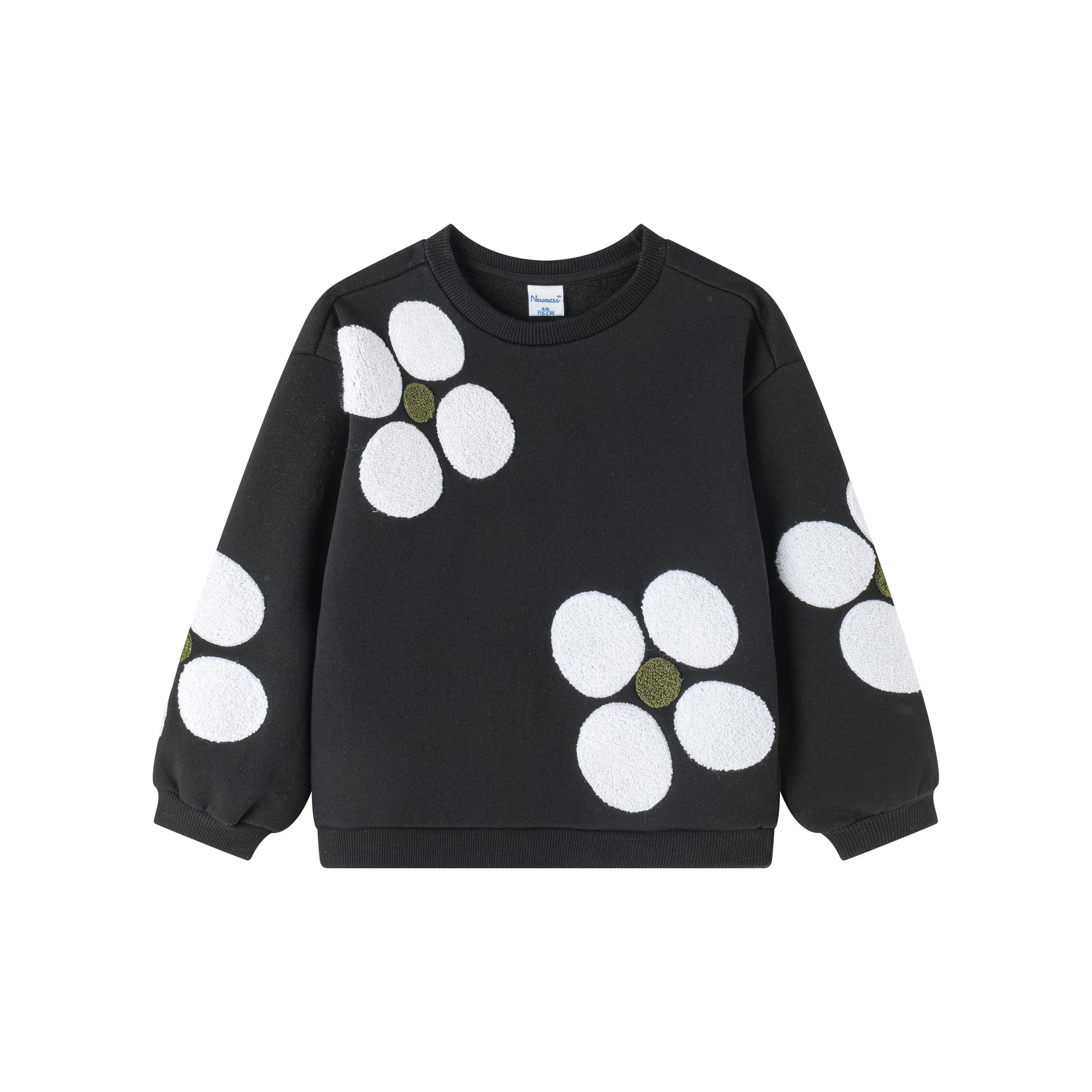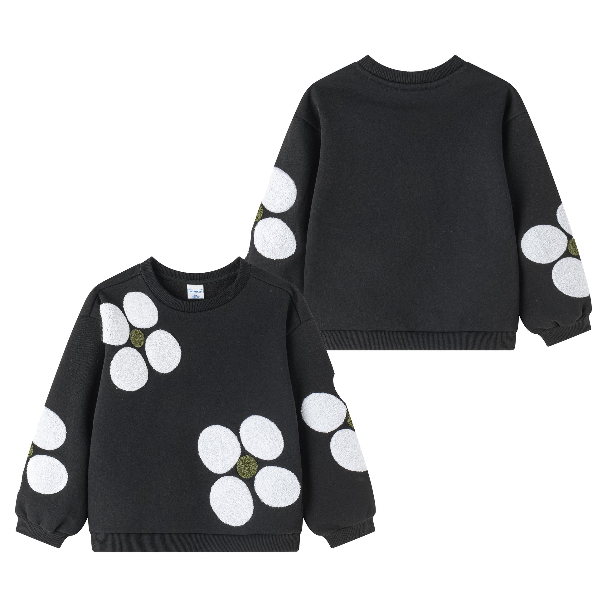 Sweat molletonné avec motifs floraux volumineux sur la face avant, doté d’un col rond et de manches ajustées.