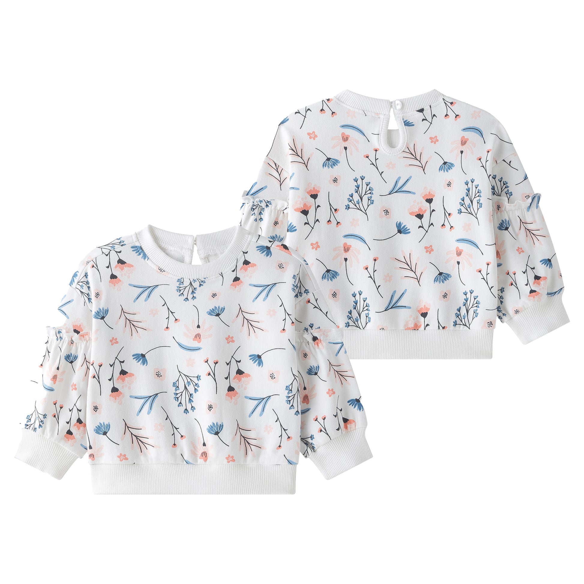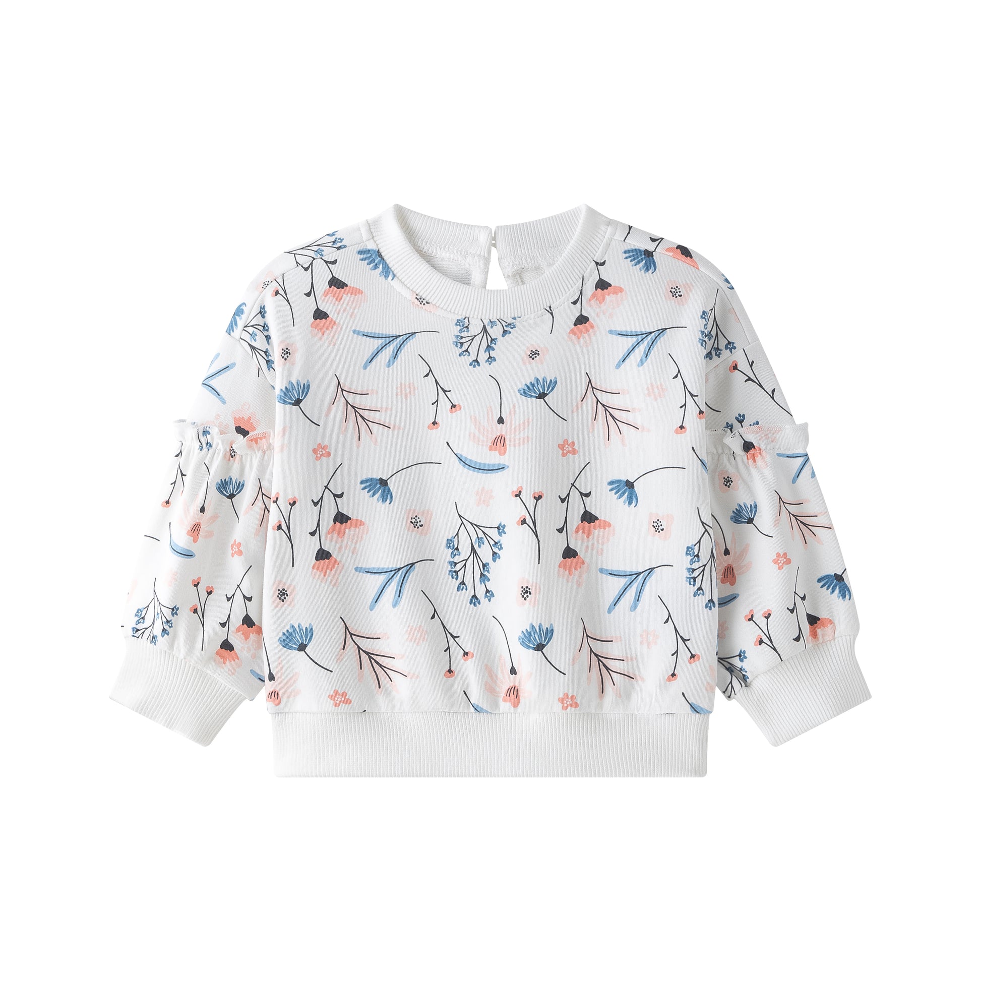 Sweat en molleton avec motifs floraux, doté d’un bouton au dos pour un enfilage simplifié, et des poignets ajustés pour un meilleur maintien.